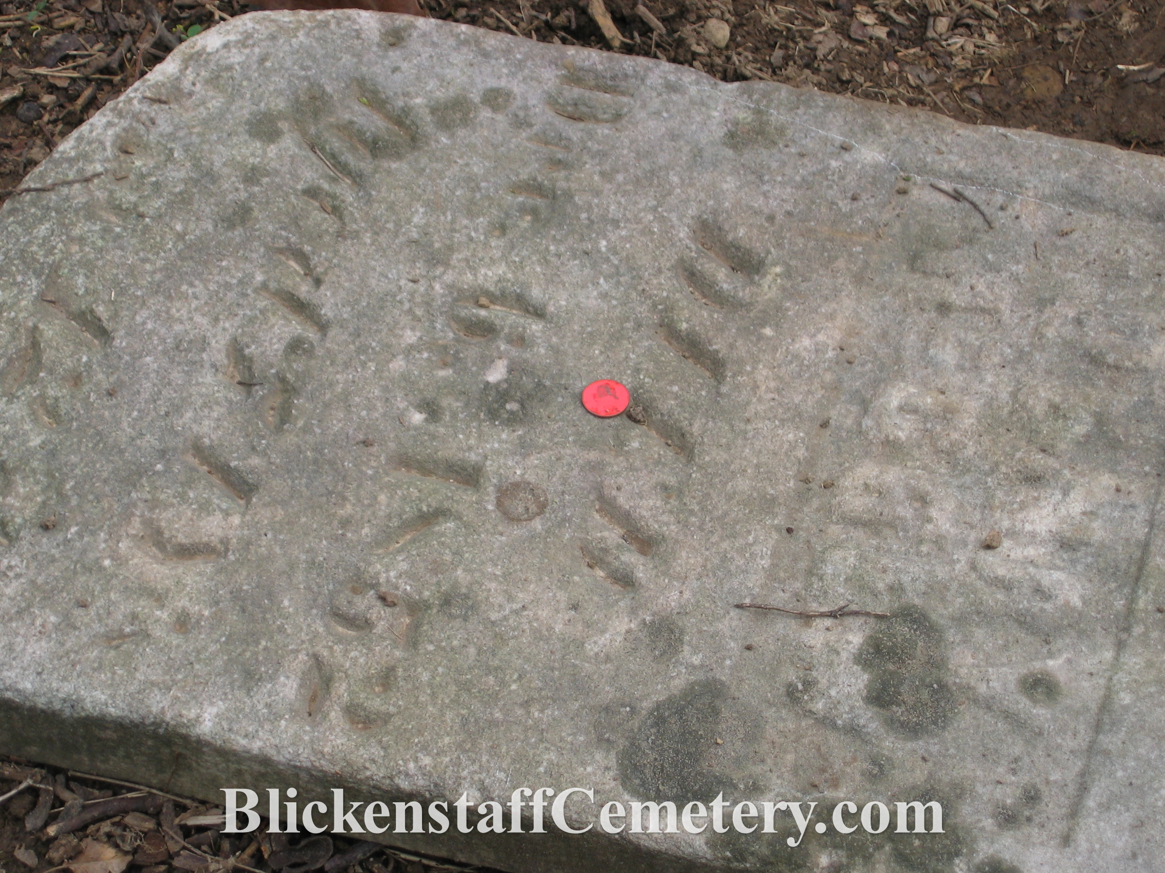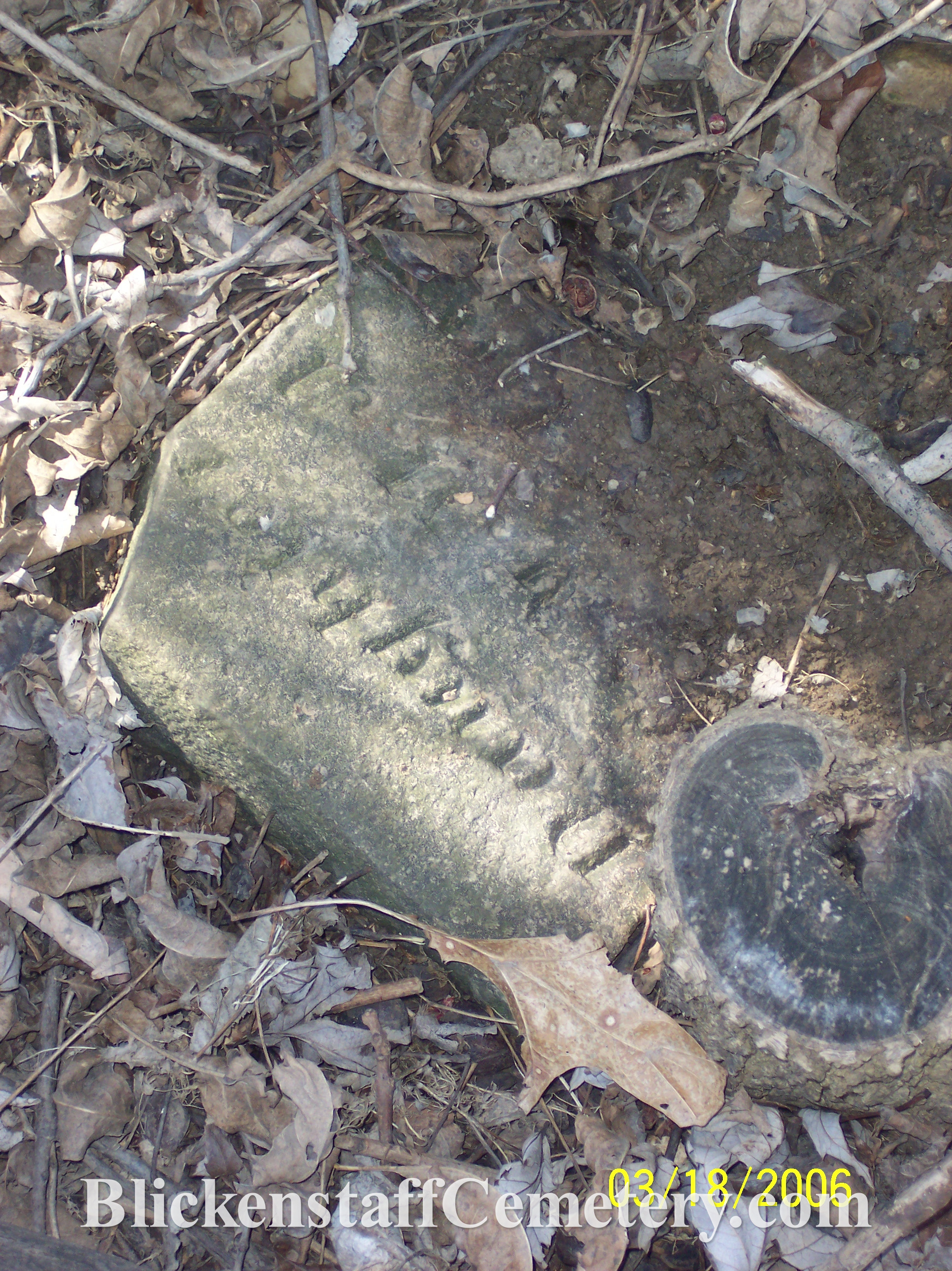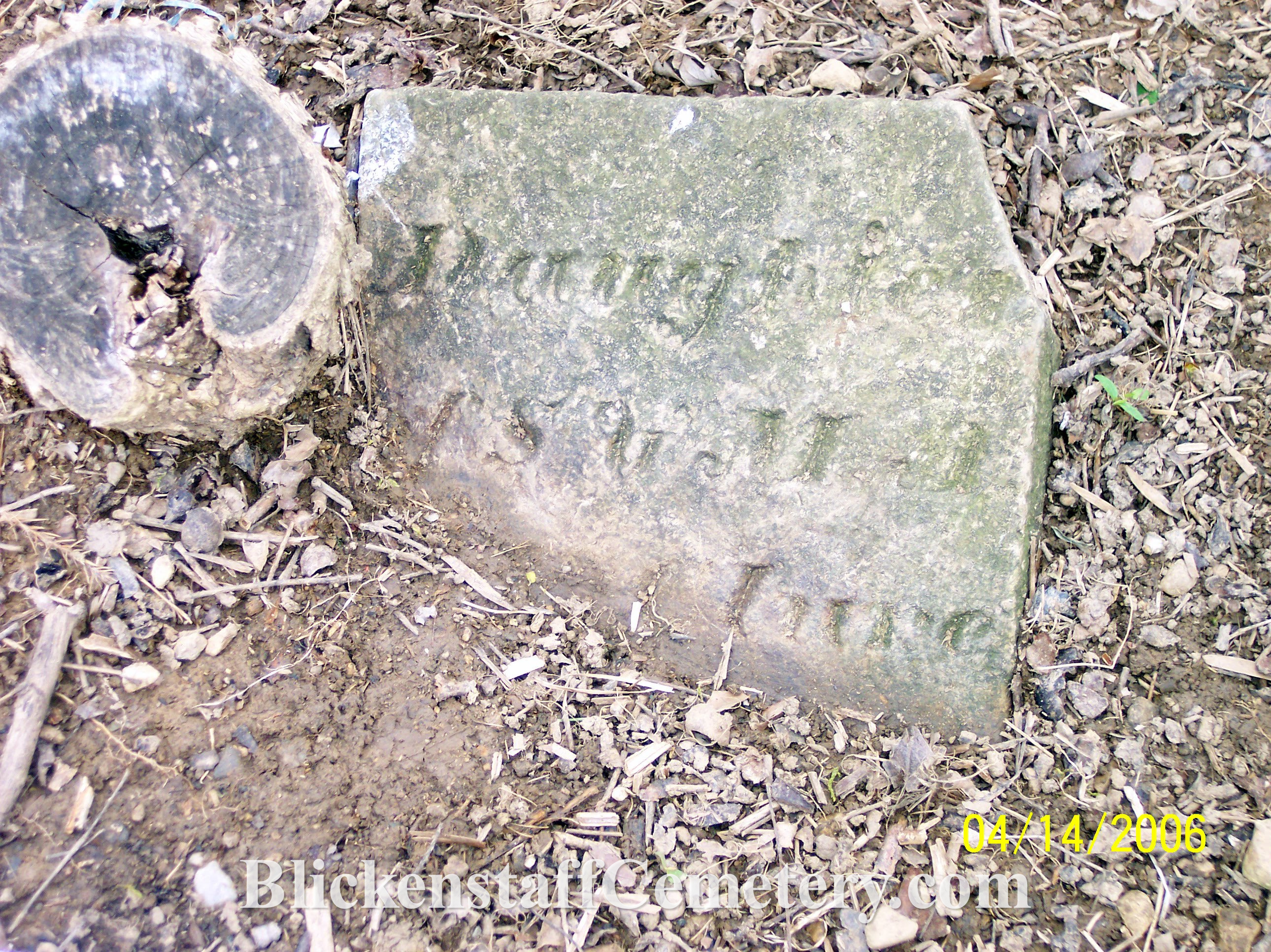 BLICKENSTAFF, Catherine (maiden name HAUVER) w. of Chris. died 4-3-1859 age 74 years (stone found buried in 2006)