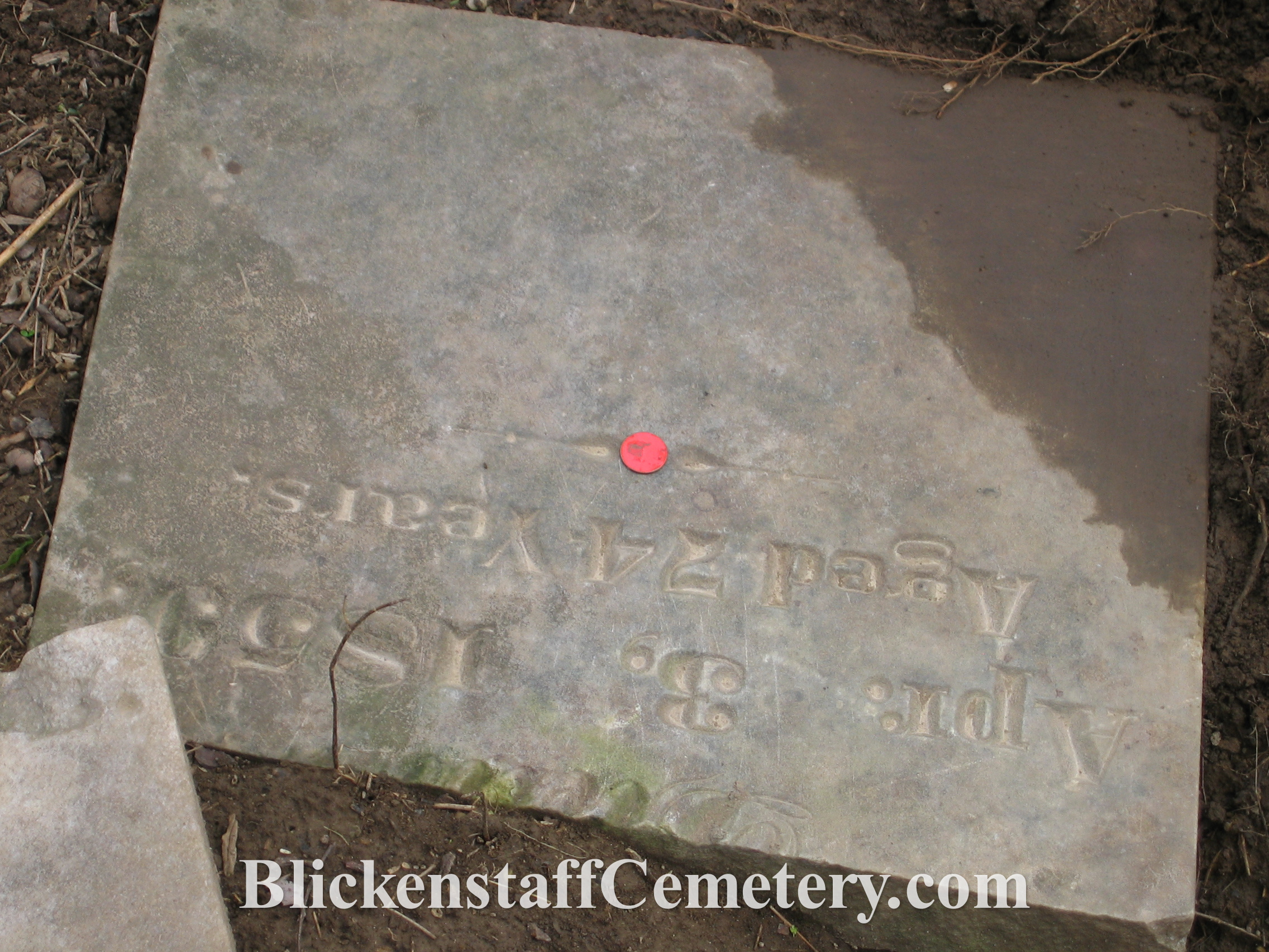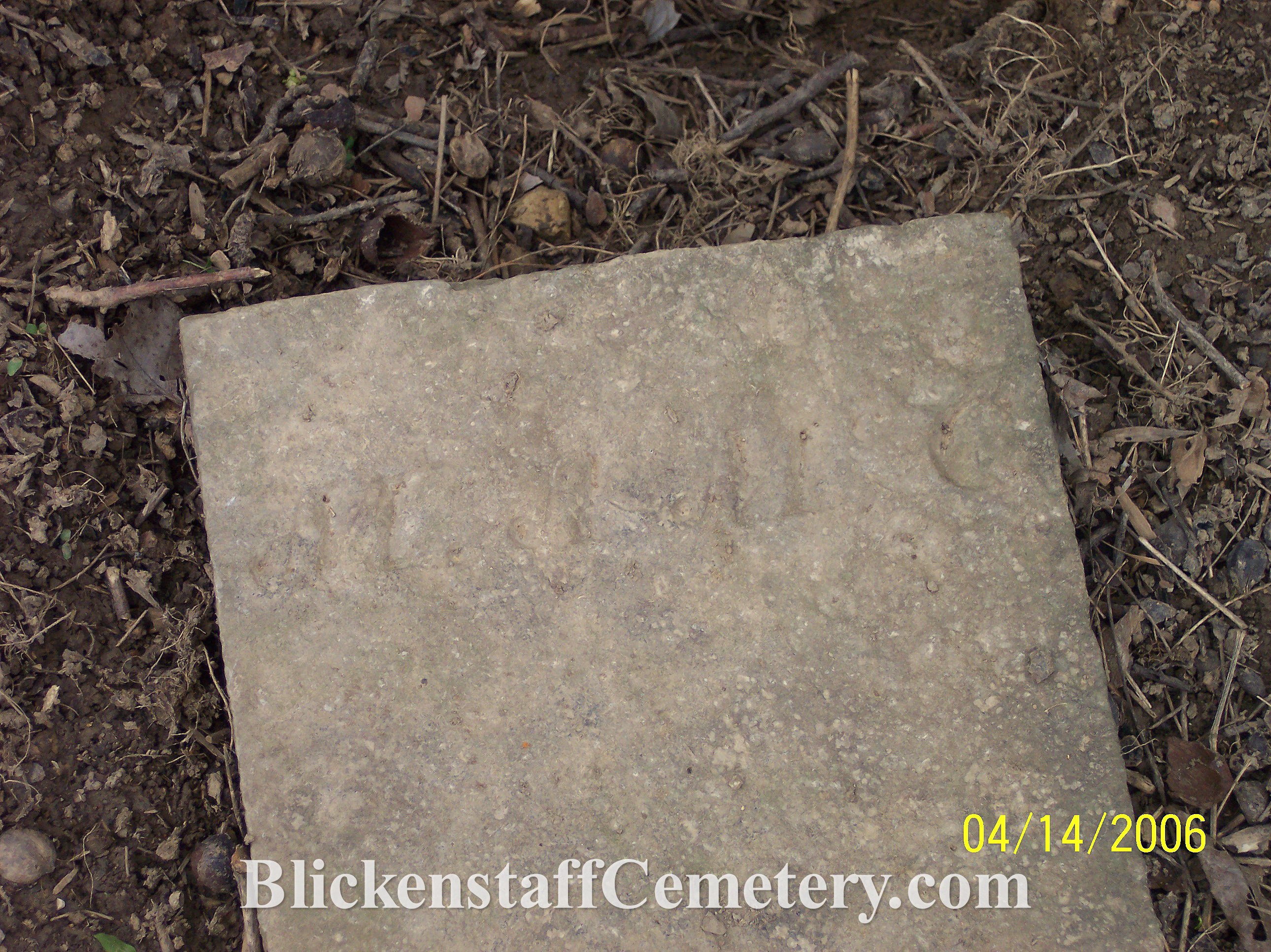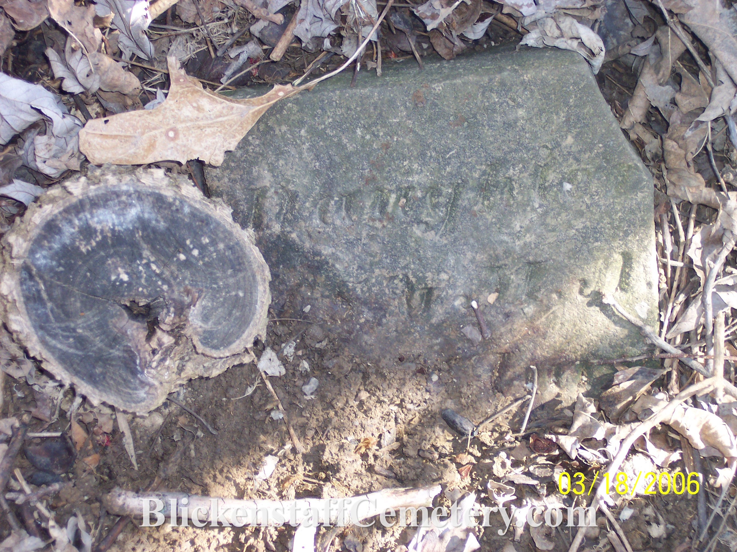 BLICKENSTAFF, Catherine (maiden name HAUVER) w. of Chris. died 4-3-1859 age 74 years (stone found buried in 2006)