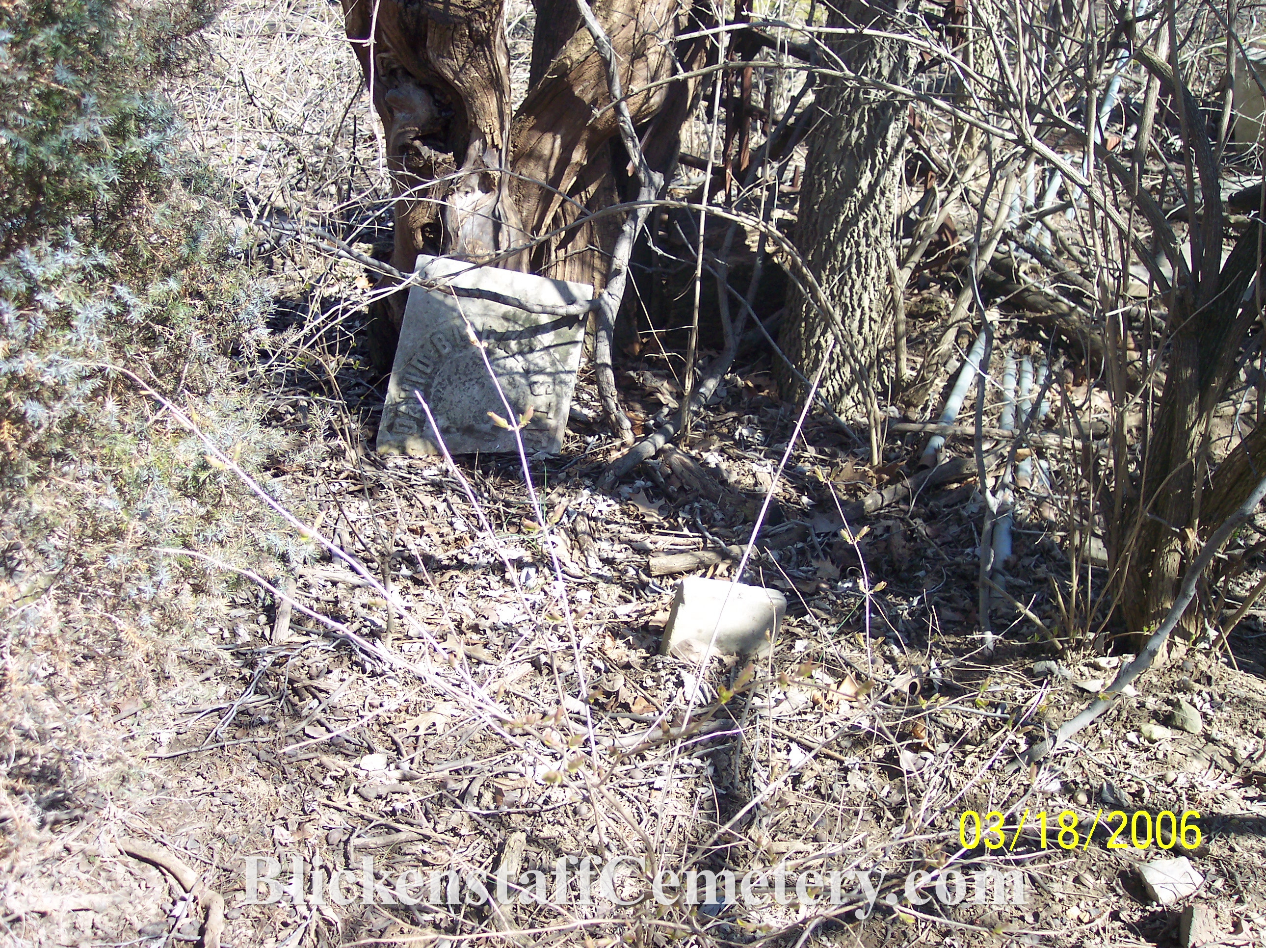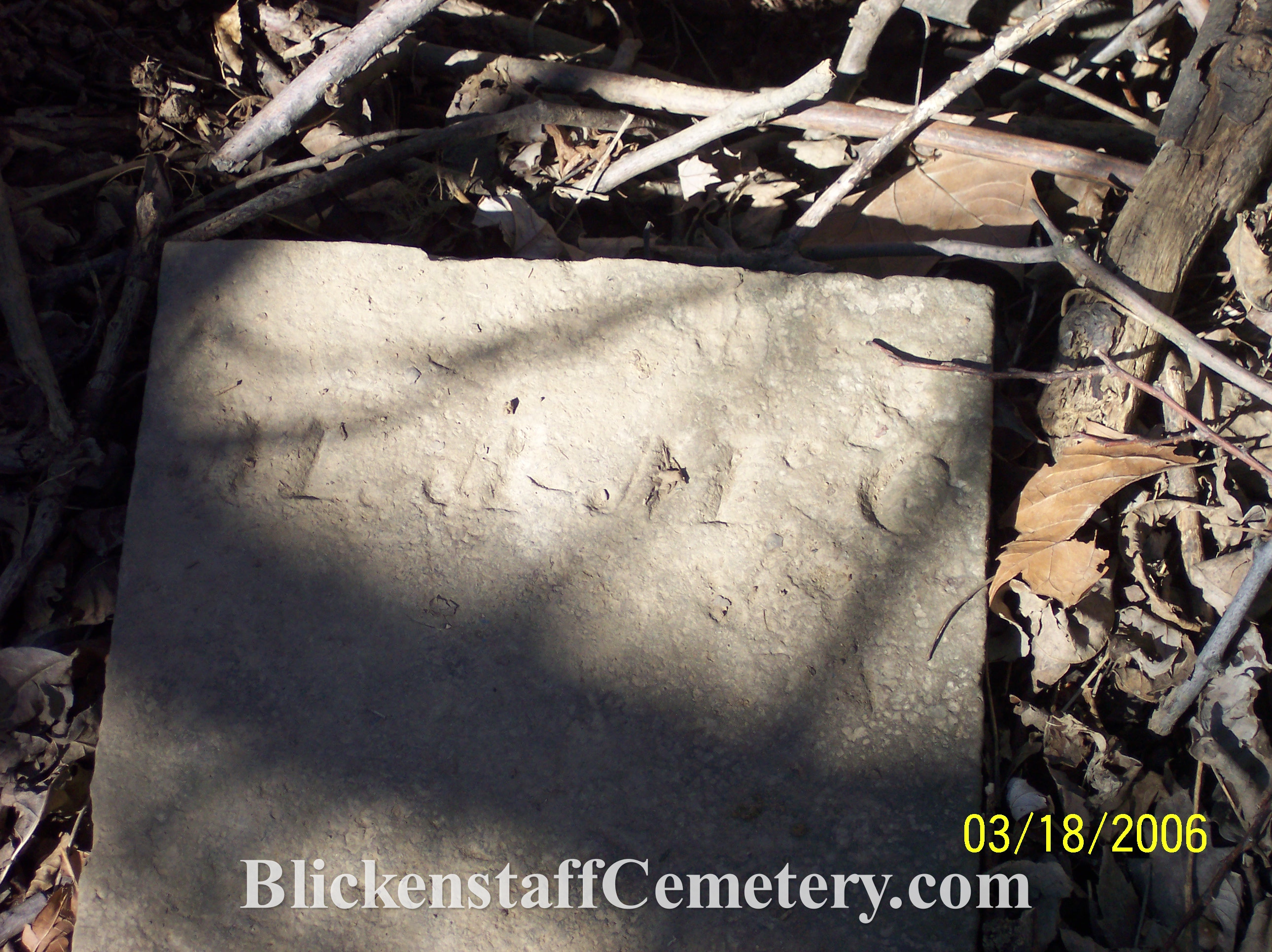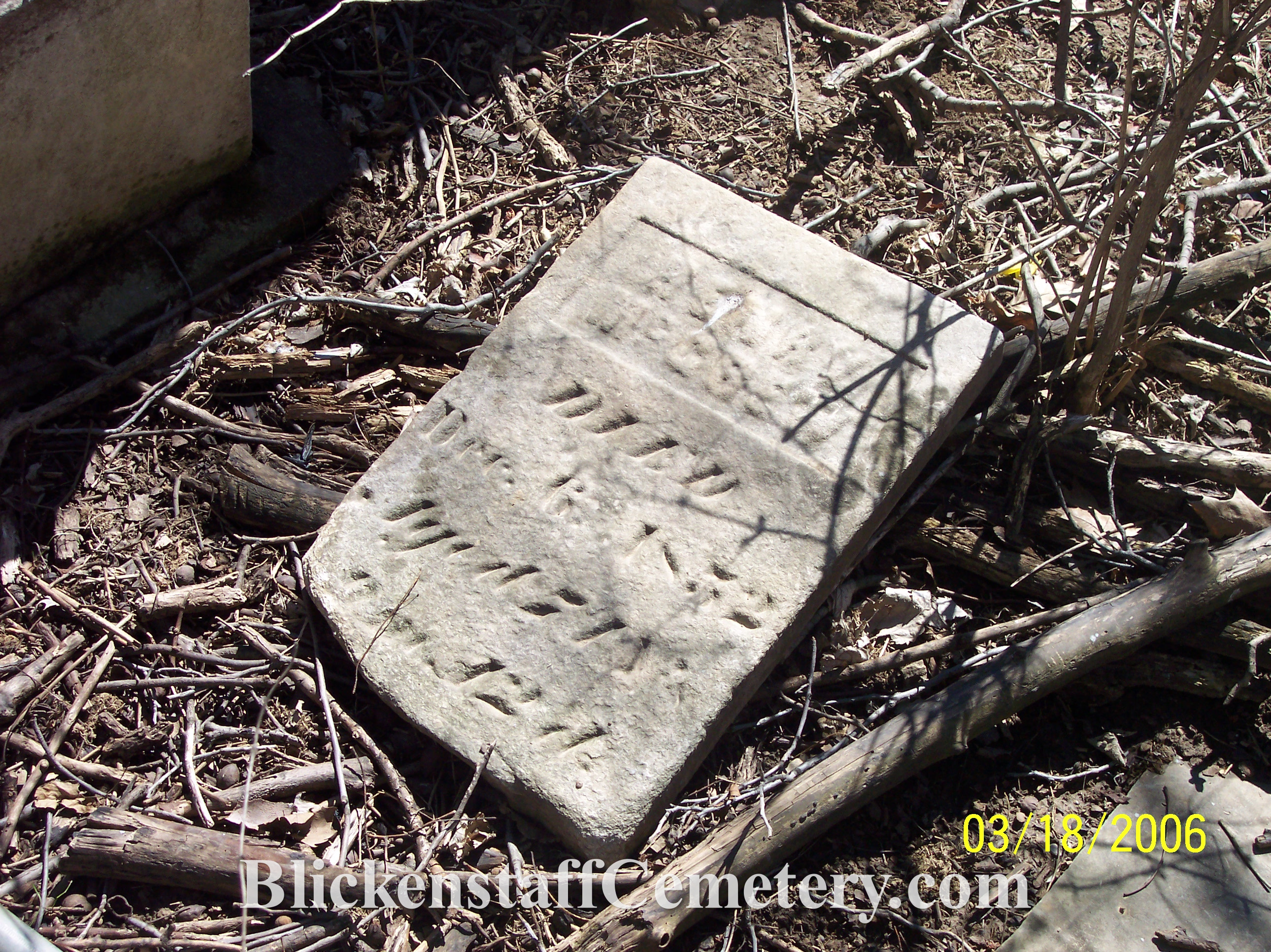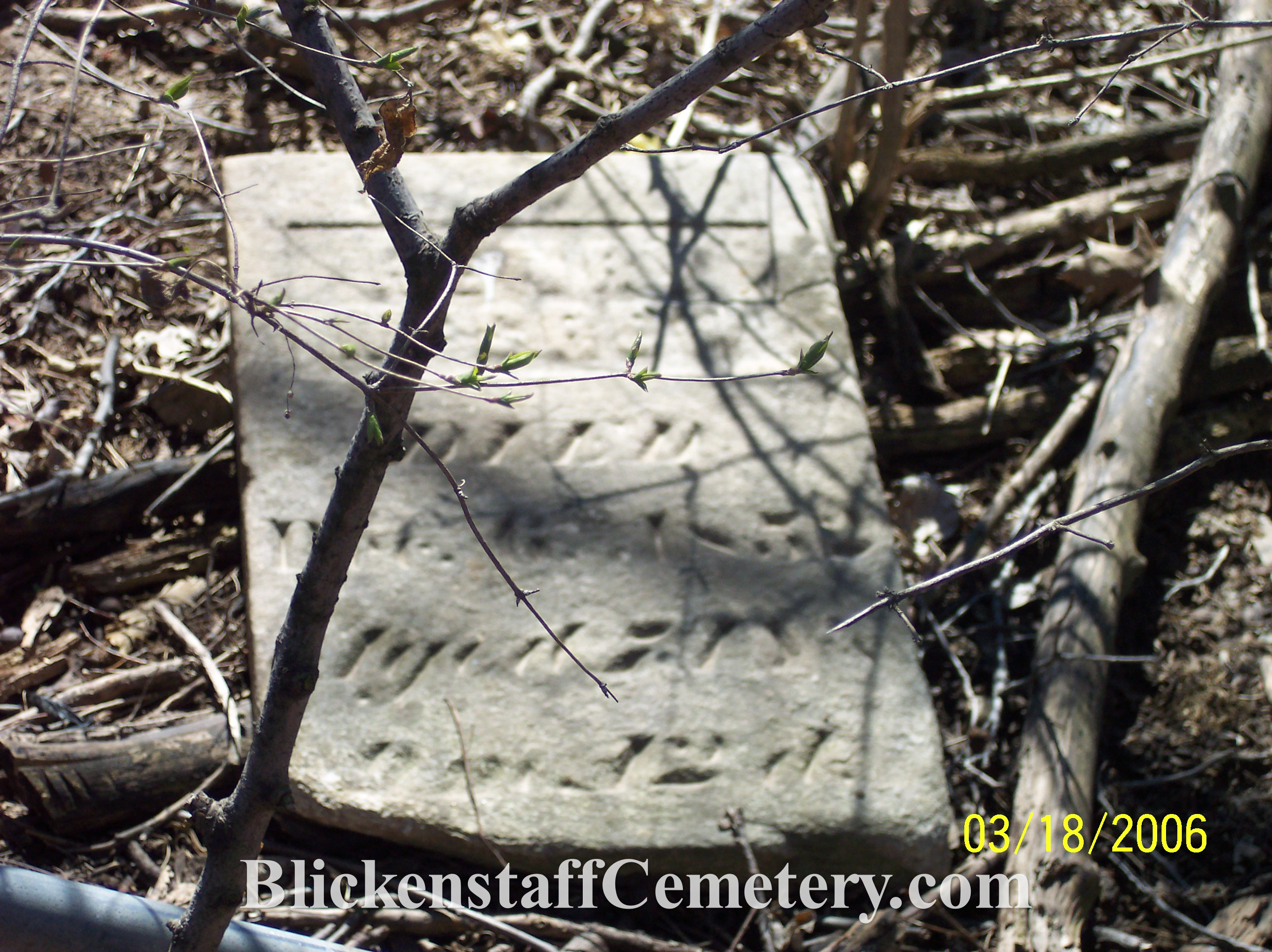 David Blickenstaff died March 6, 1859, aged 47 years 3MO. & 23DS. Footstone: D.B. |