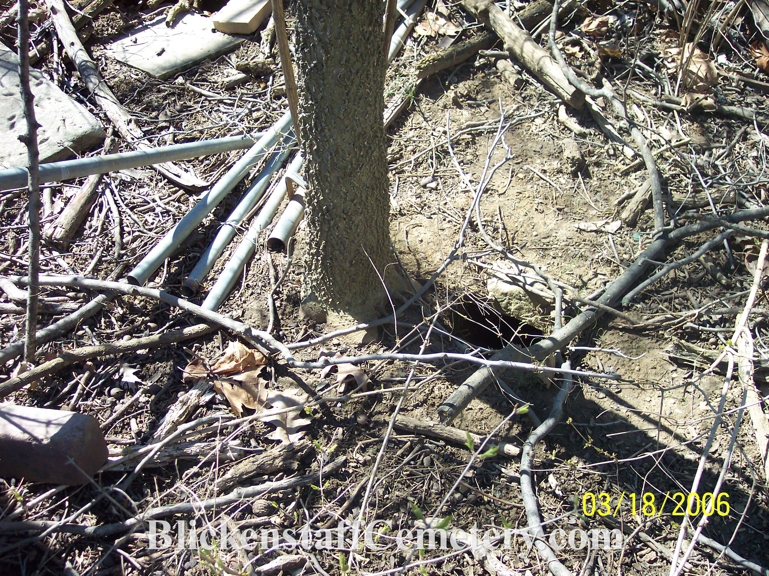 hogs that had burrowed under many of the downed markers and established an elaborate system of tunnels. Several wooden