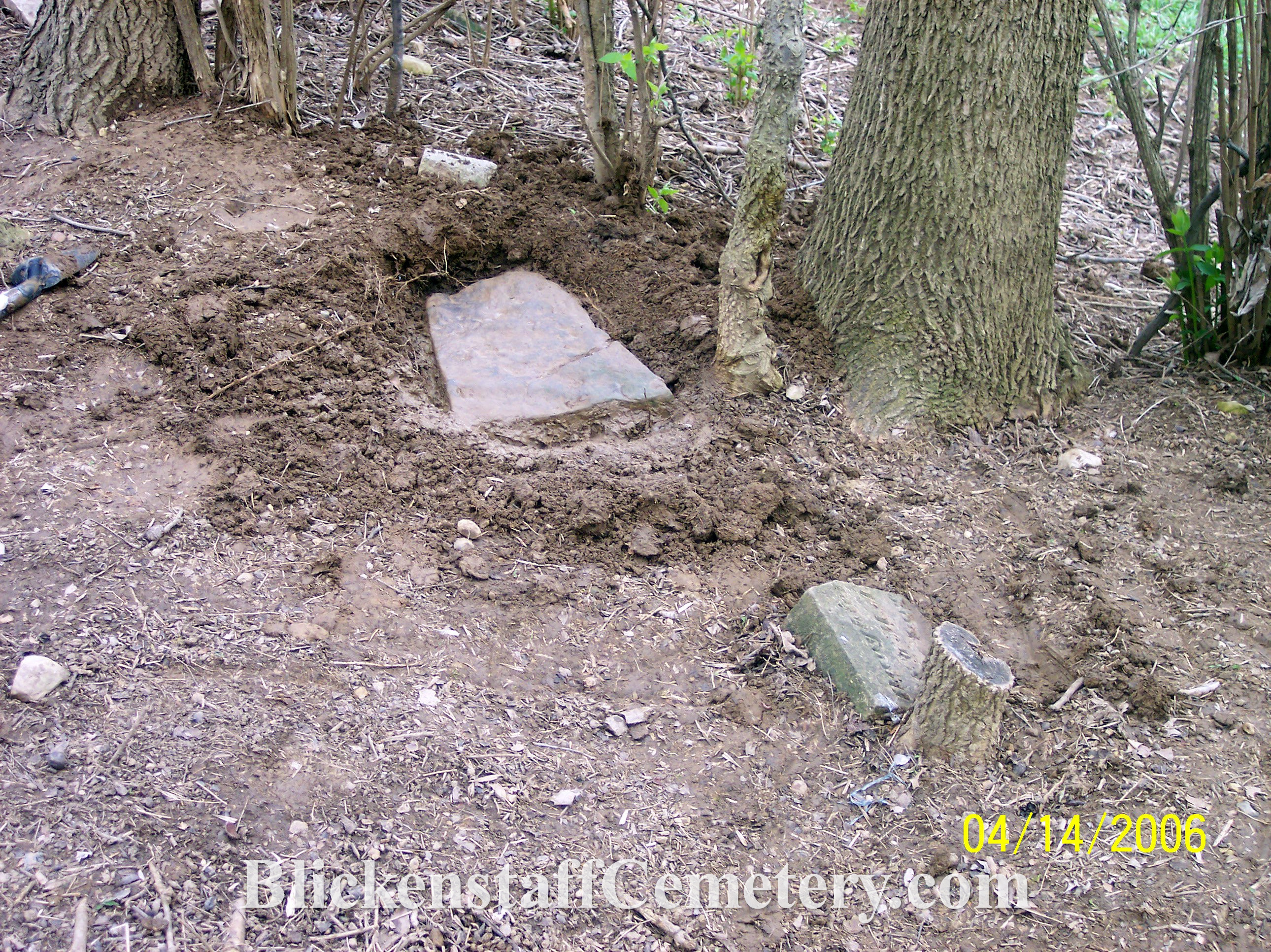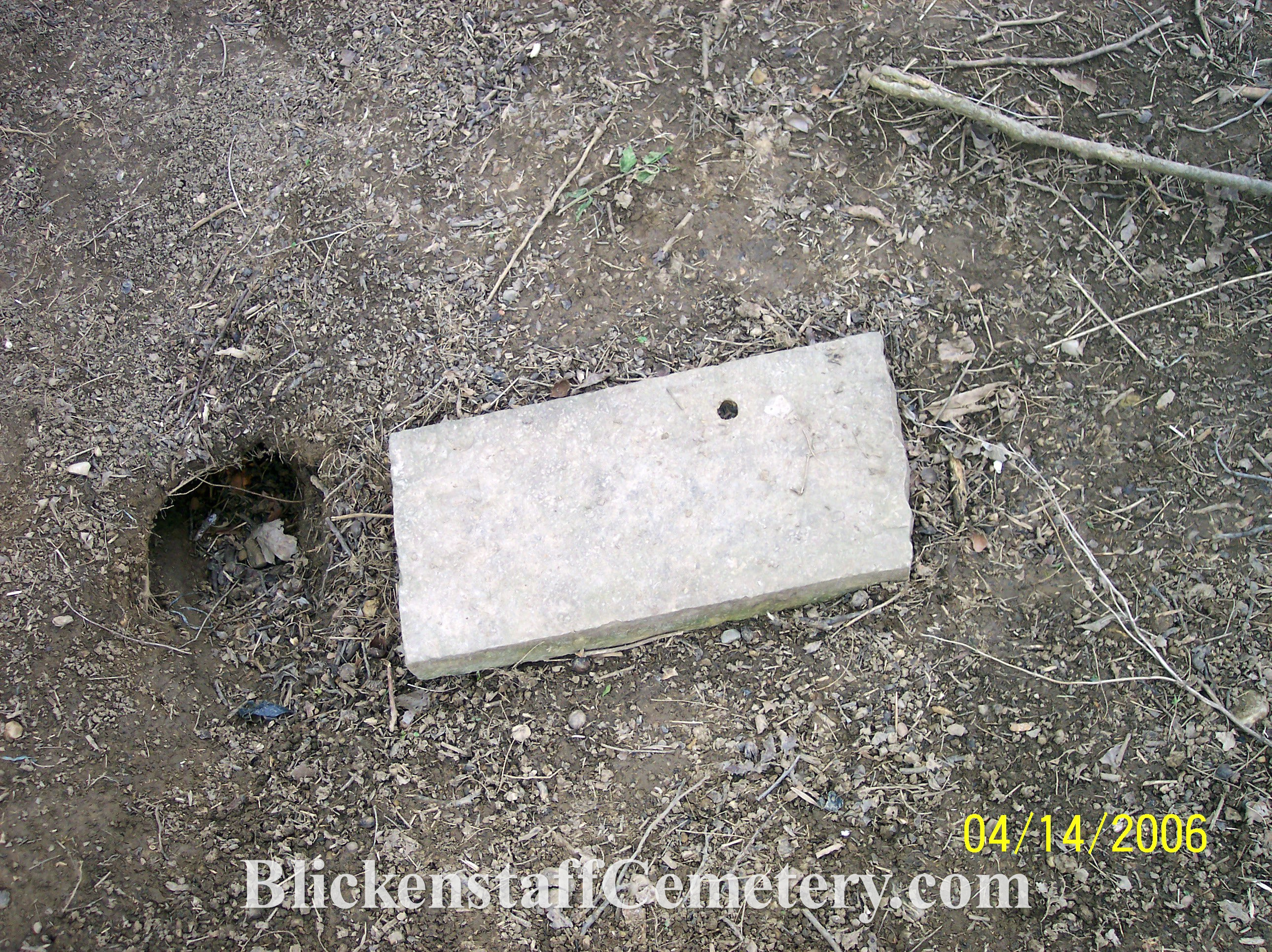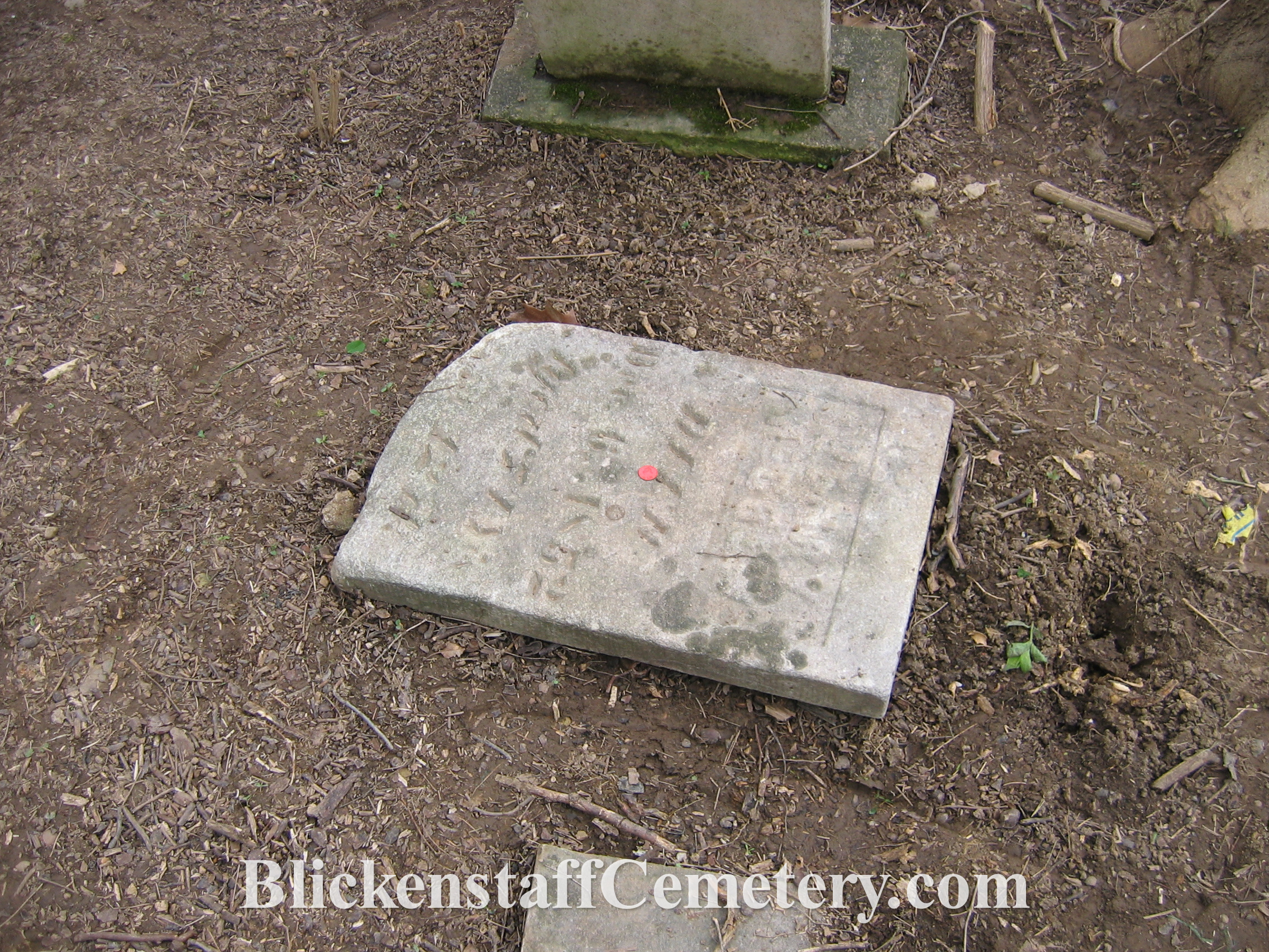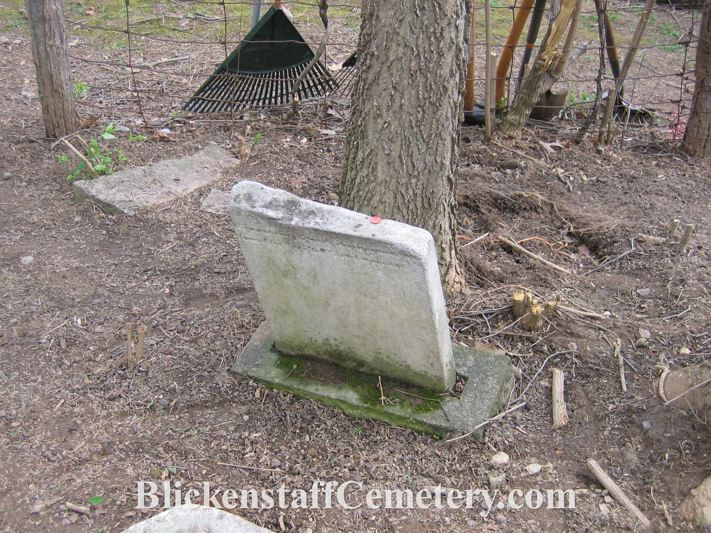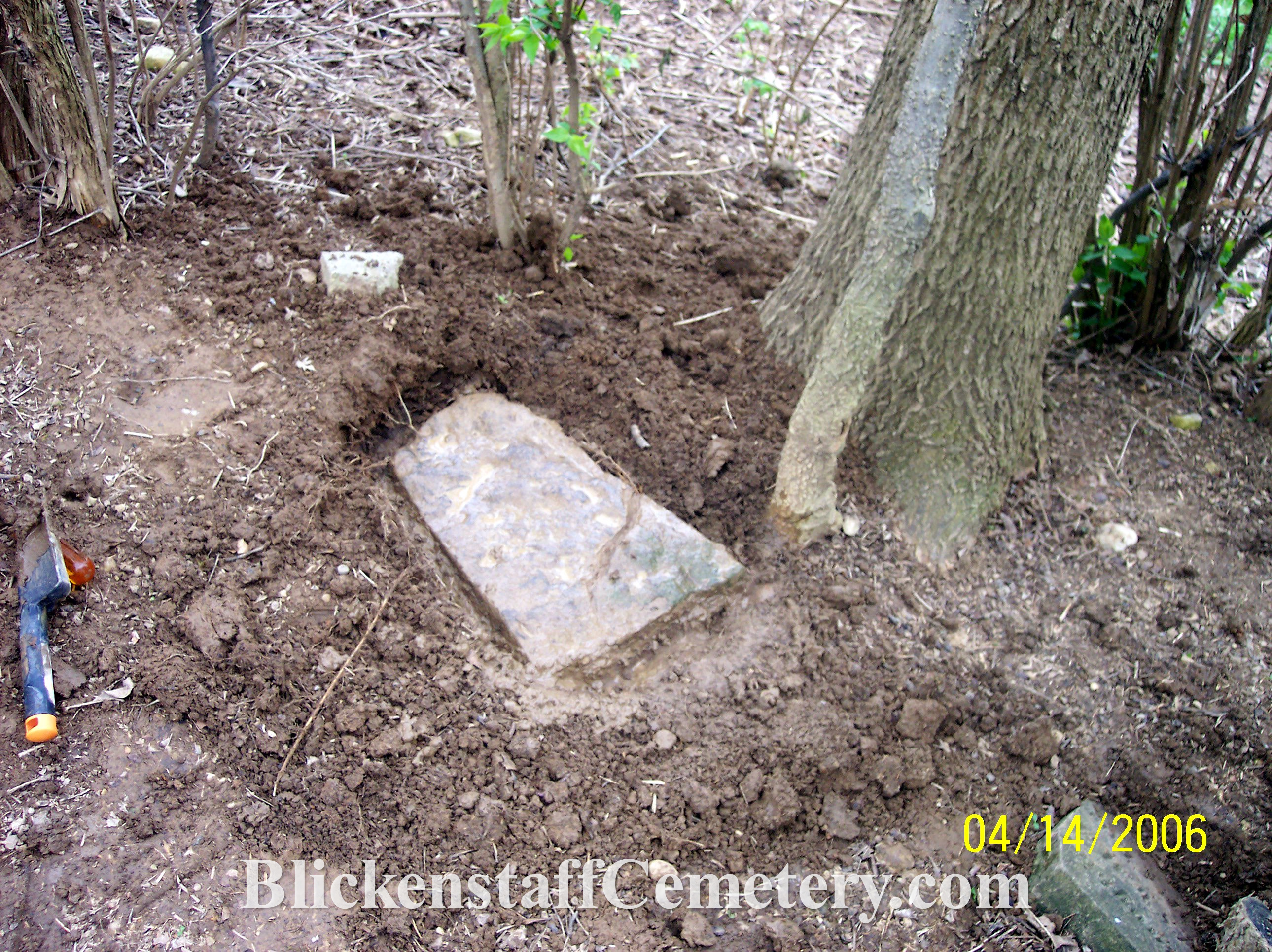 In August of 2008 a blank, unusable bottom portion of one of the tablet stones was engraved “Blickenstaff Cemetery Est.
