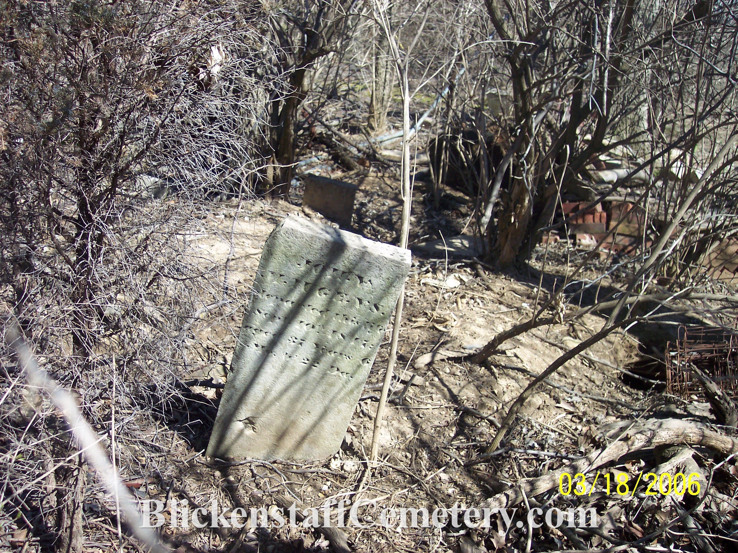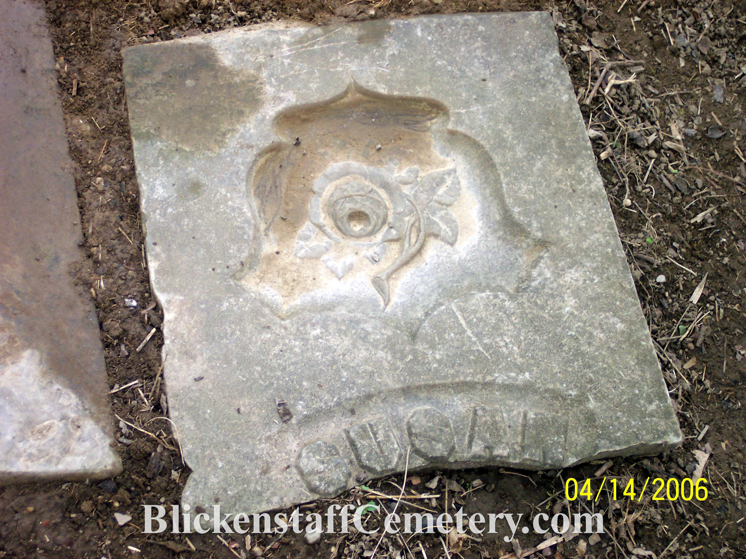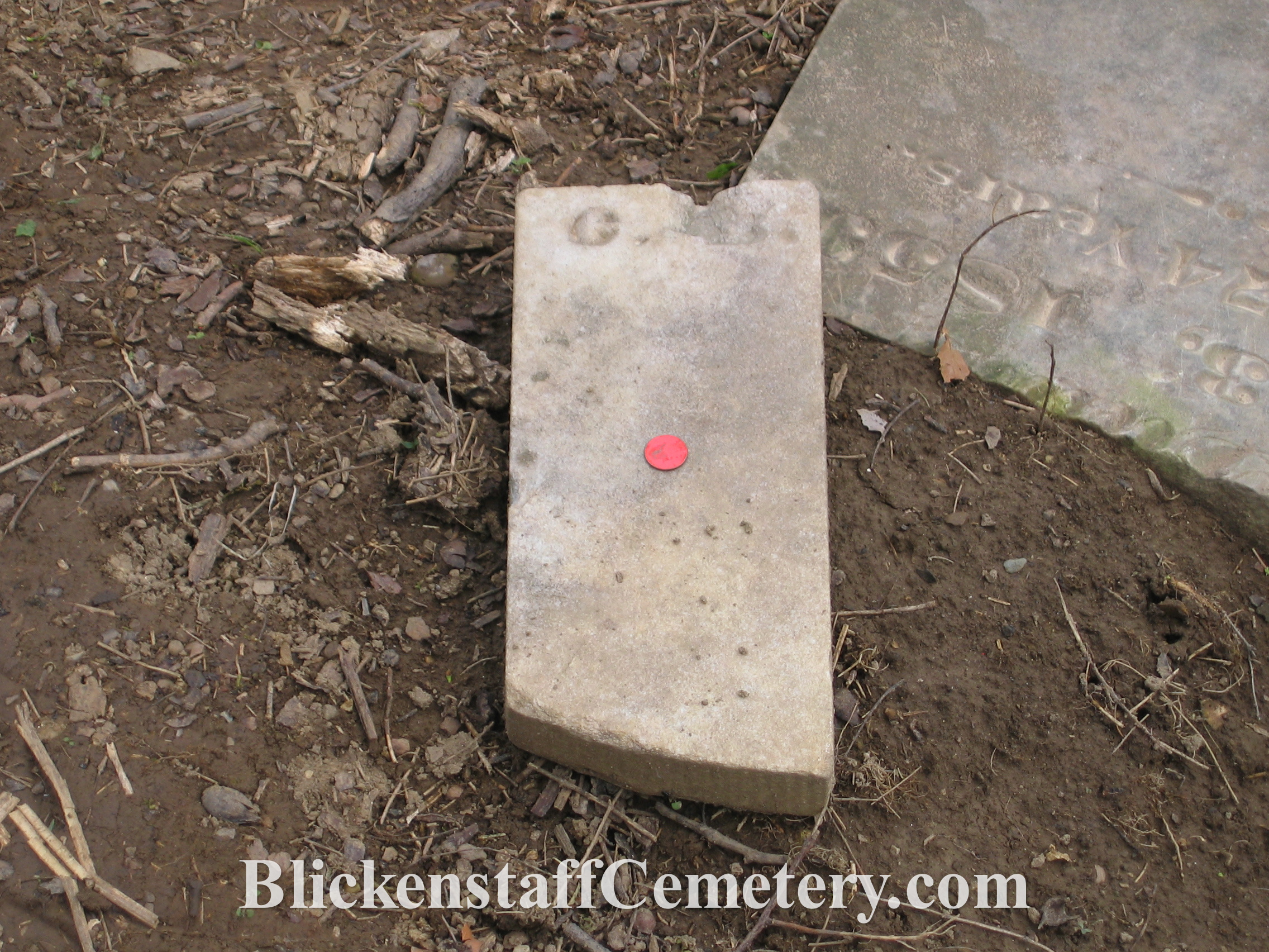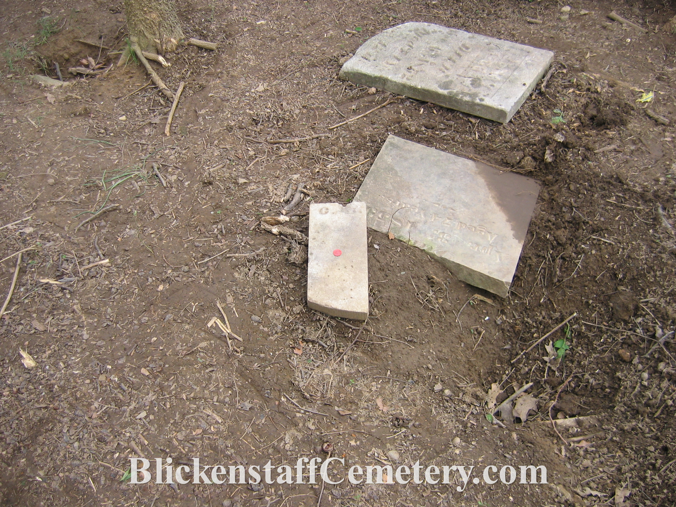 In August of 2008 a blank, unusable bottom portion of one of the tablet stones was engraved “Blickenstaff Cemetery Est.