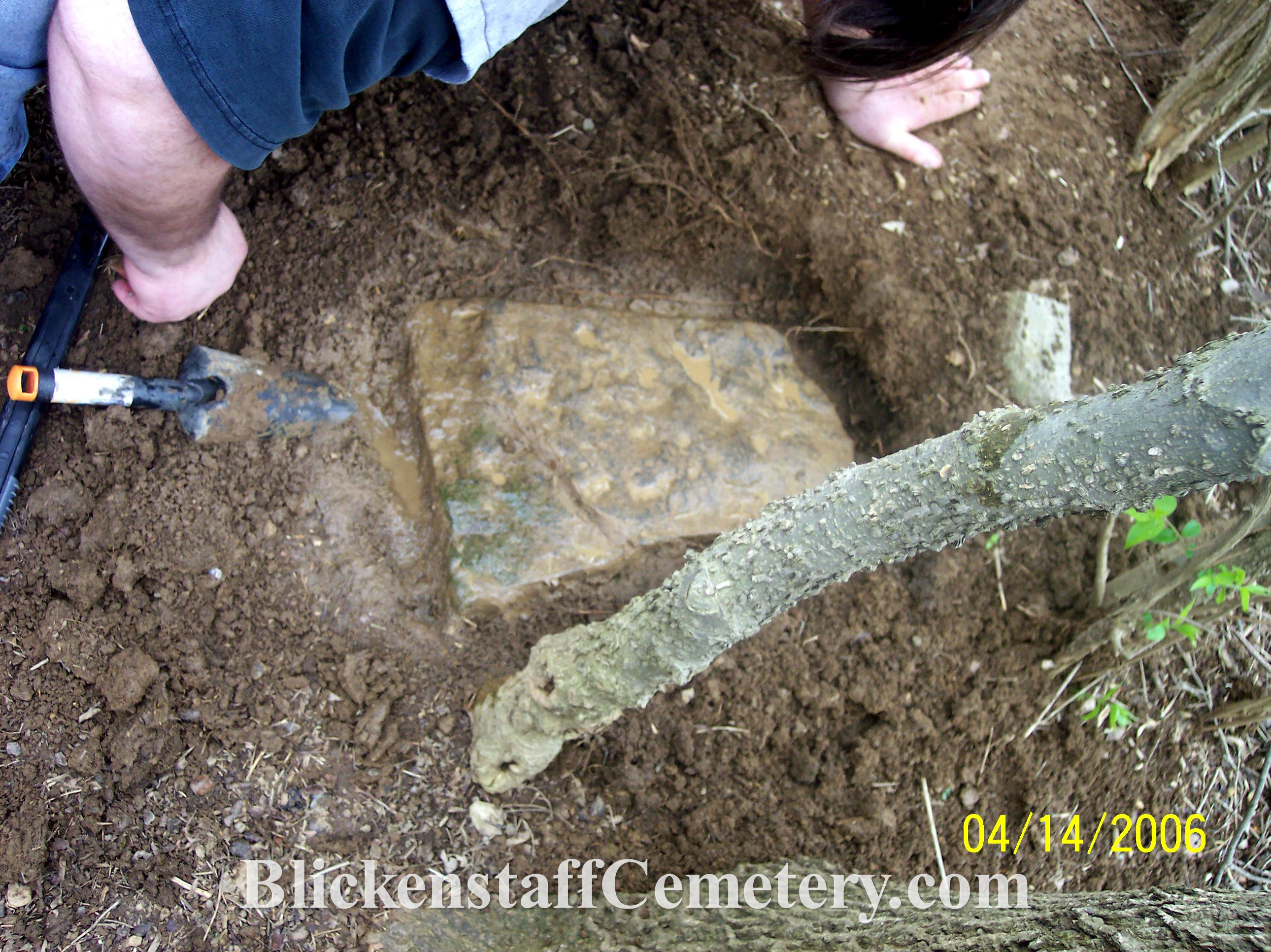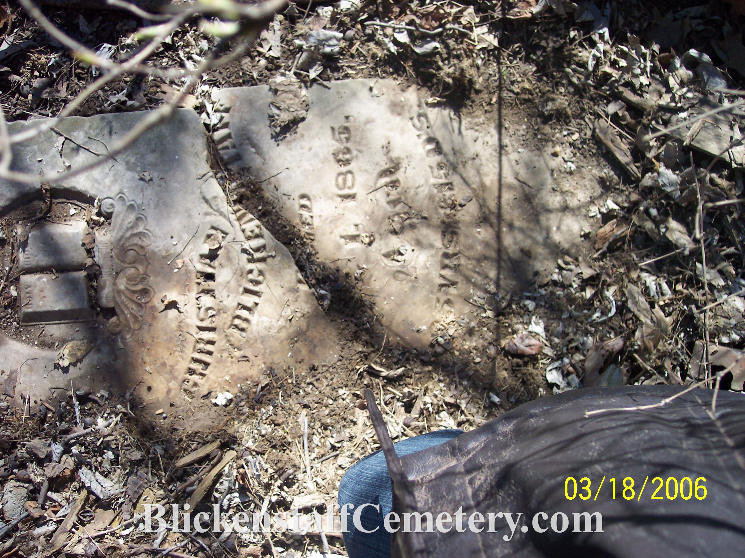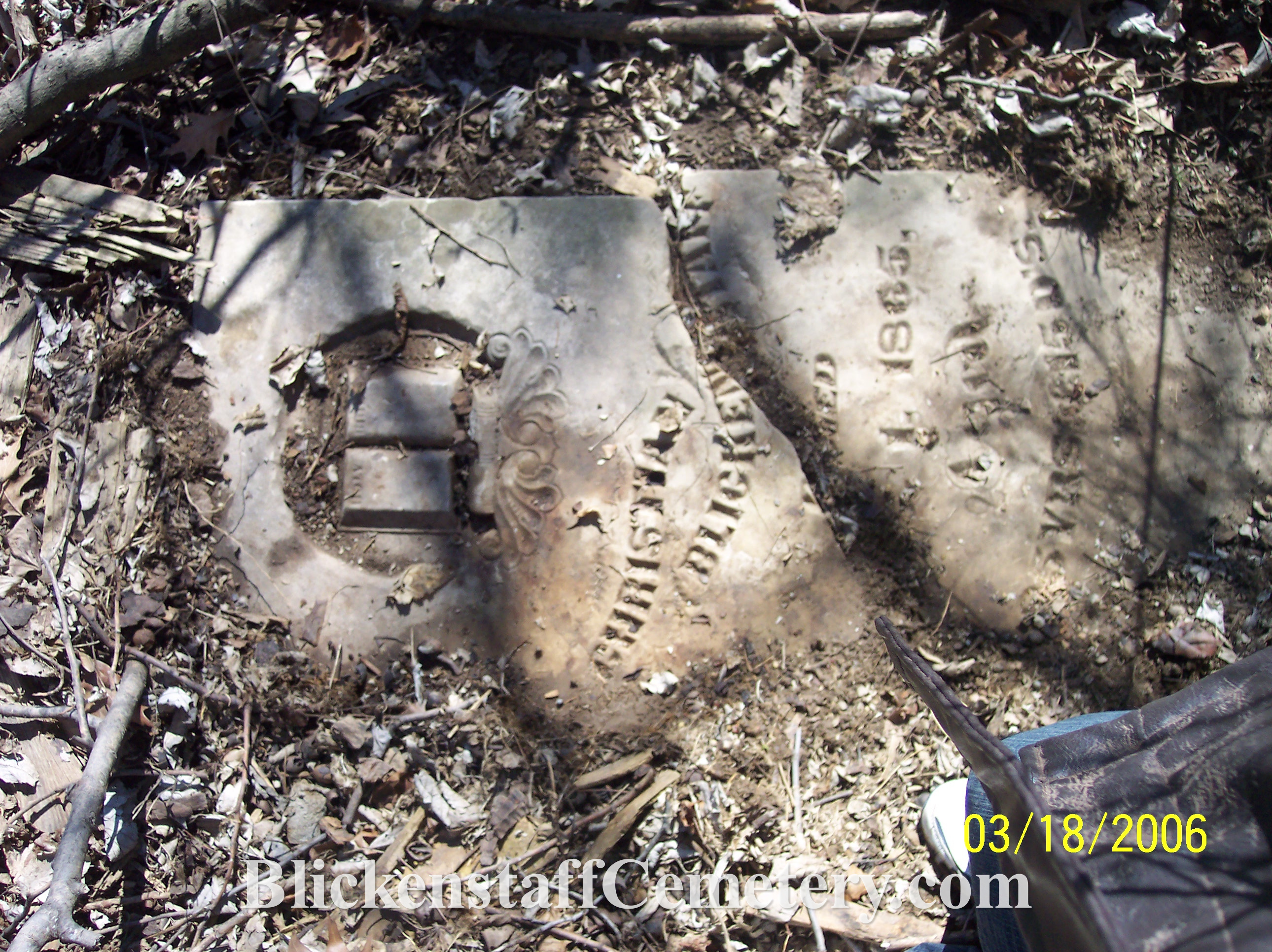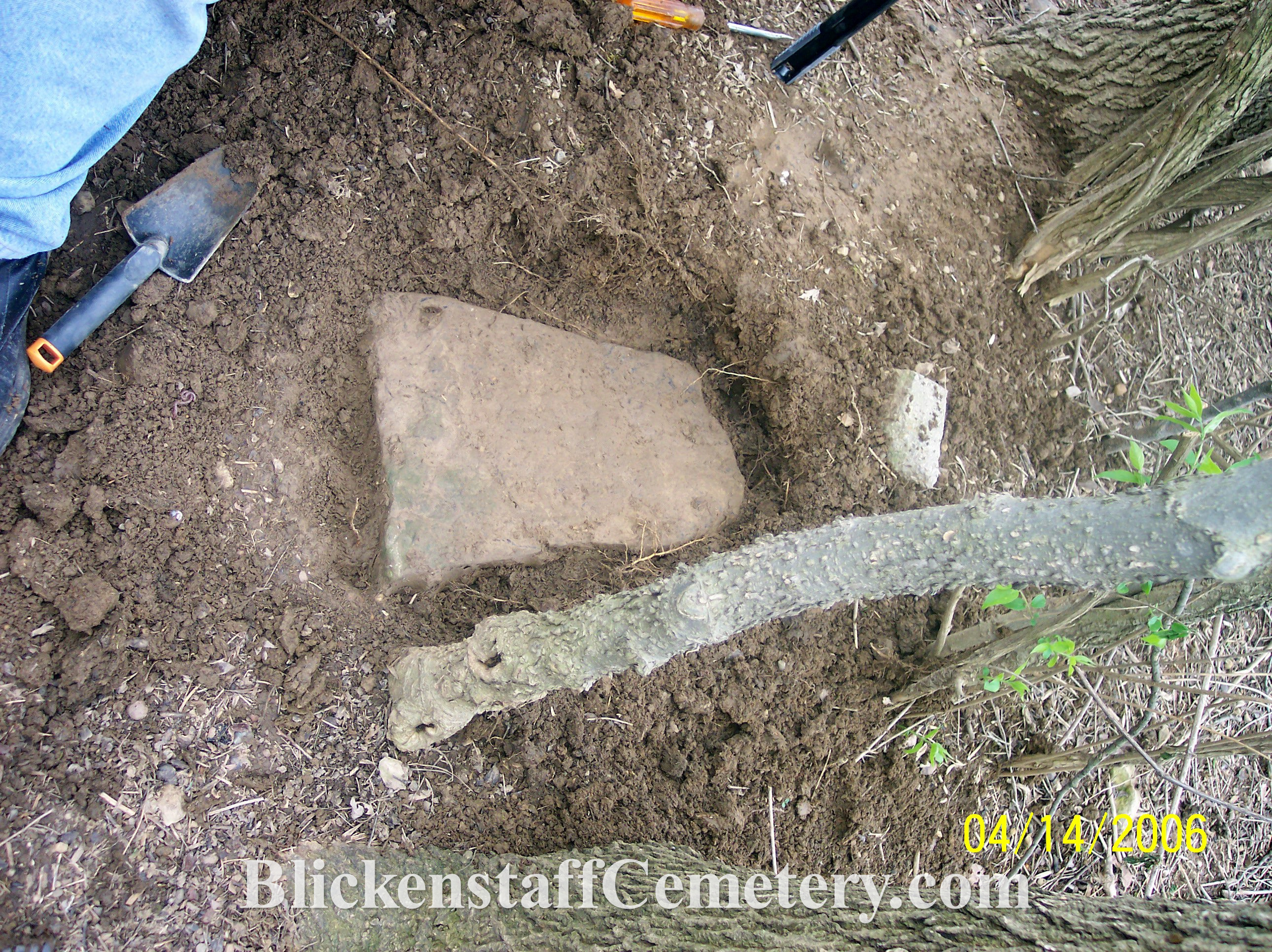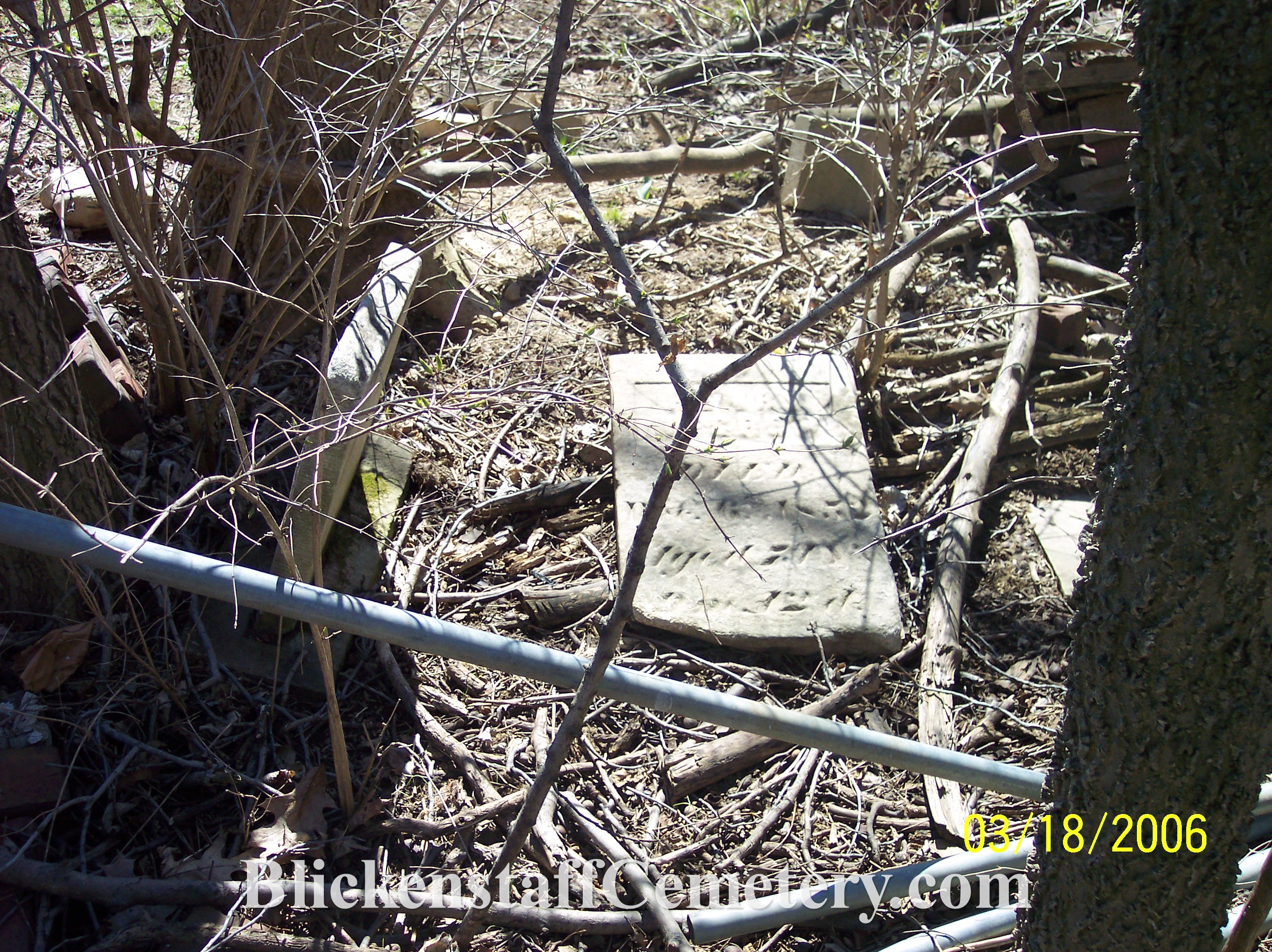 In August of 2008 a blank, unusable bottom portion of one of the tablet stones was engraved “Blickenstaff Cemetery Est.