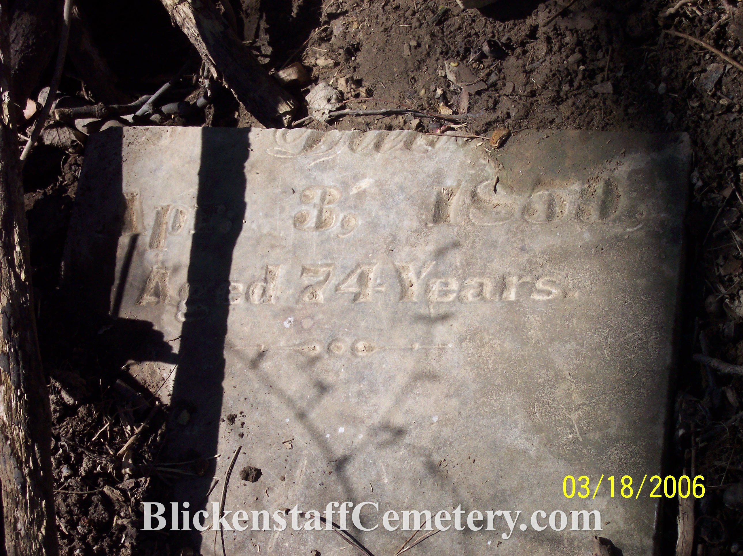 Christian Blickenstaff died Dec. 1, 1865, aged 85 YRS. & 15 D’s Footstone: C.B. |