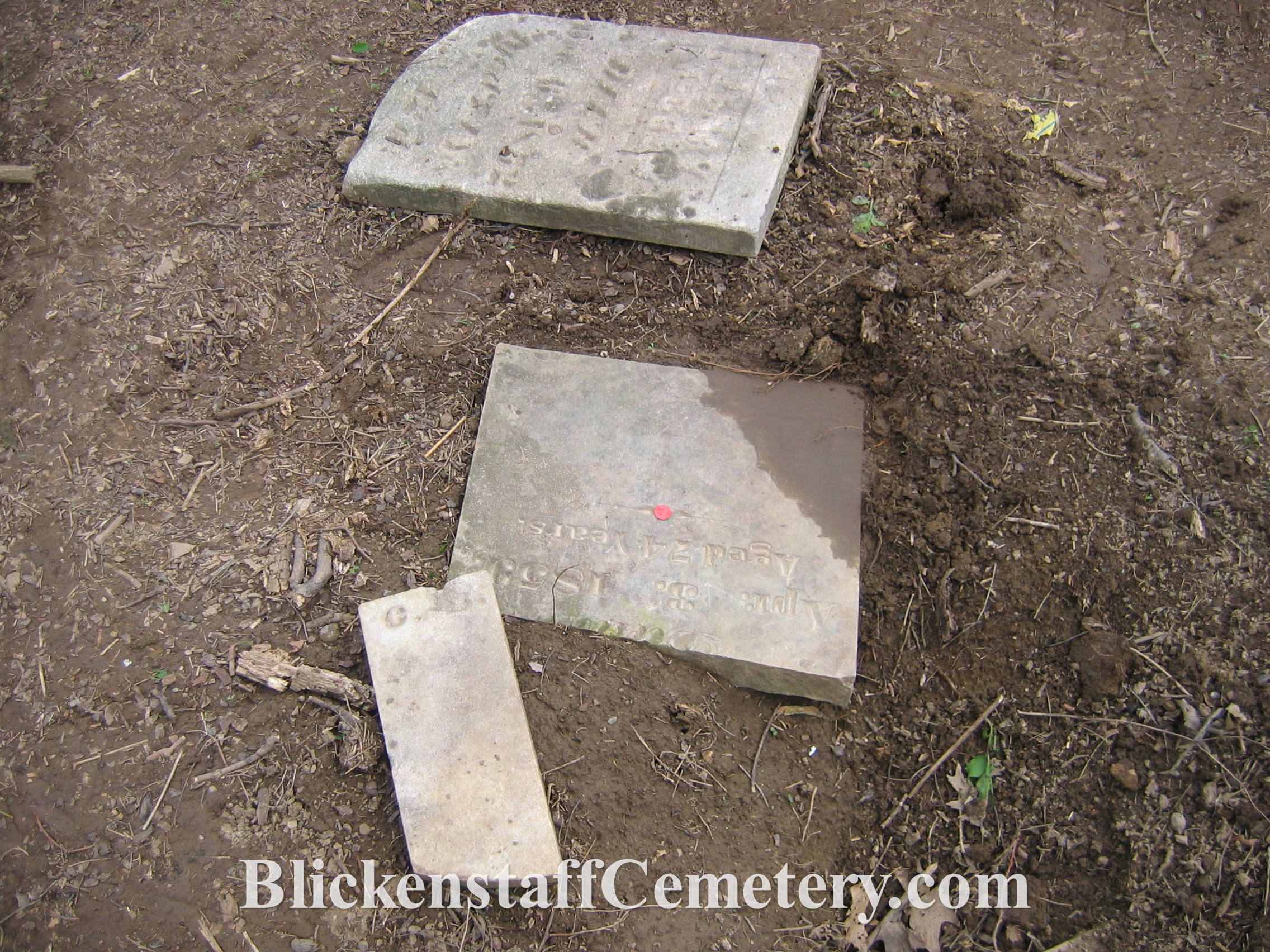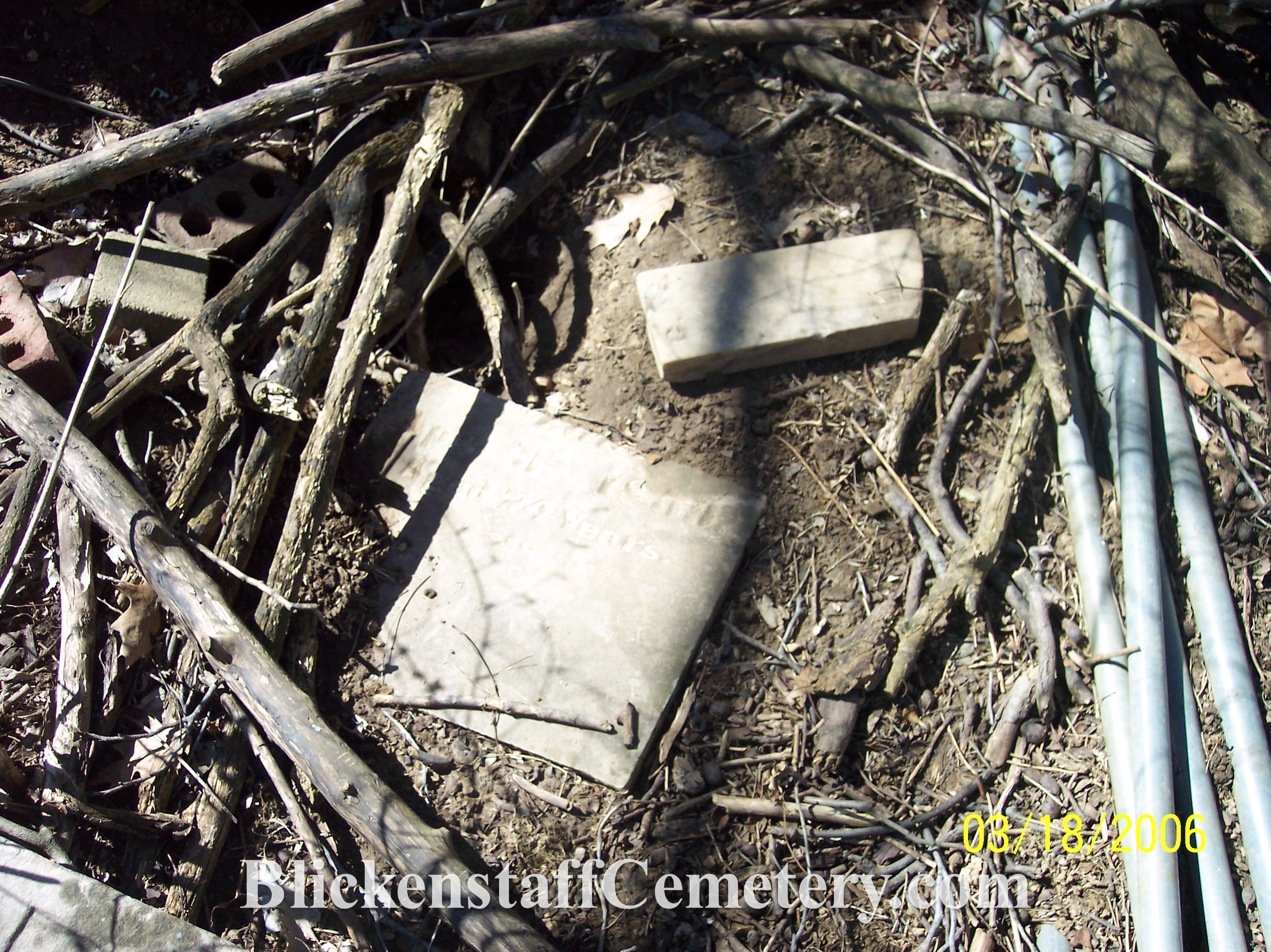 Maugens, Catherine Blickenstaff, and Mary Ann McClure were all totally buried. Foot markers for nearly every burial were