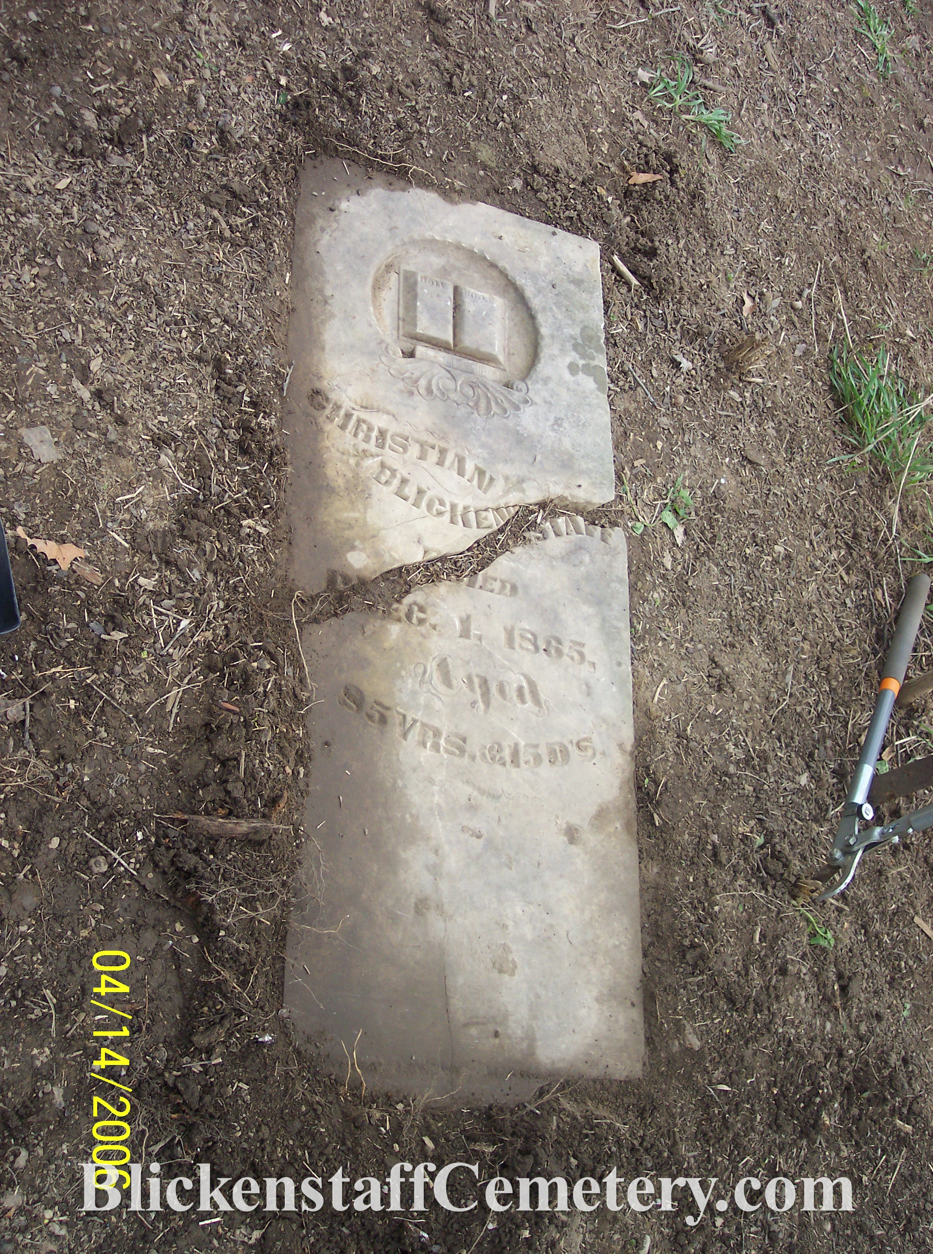 fact be the first burial. The last known burial in the cemetery was that of Christian Blickenstaff, brother of Elizabeth