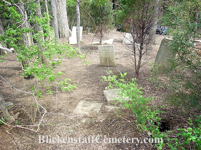 of the Blickensderfer Family in America as being buried in this cemetery without a monument marking her grave. It is likely that