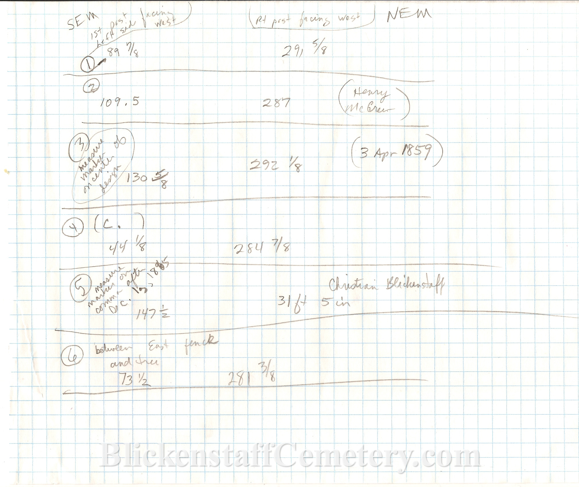 Blickenstaff Cemetery when she surveyed cemeteries in the 1960's and